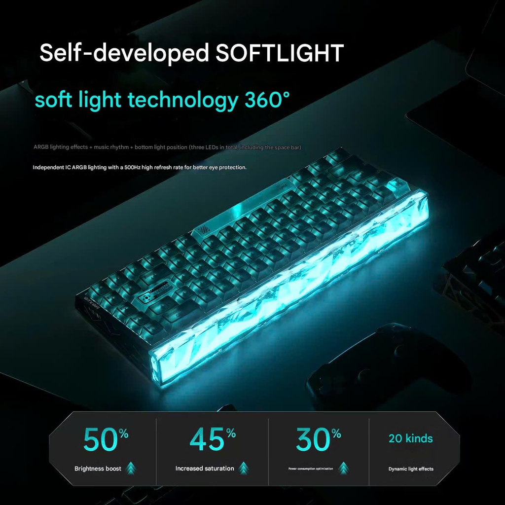 - Vỏ Case: Cấu trúc Skeleton xuyên thấu, thiết kế Cyberpunk tích hợp đèn nền SOFTLIGHT