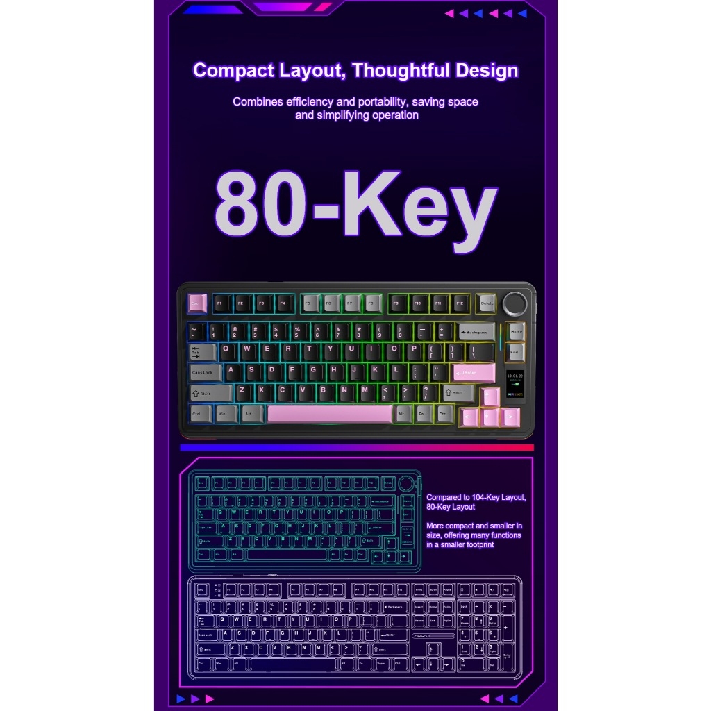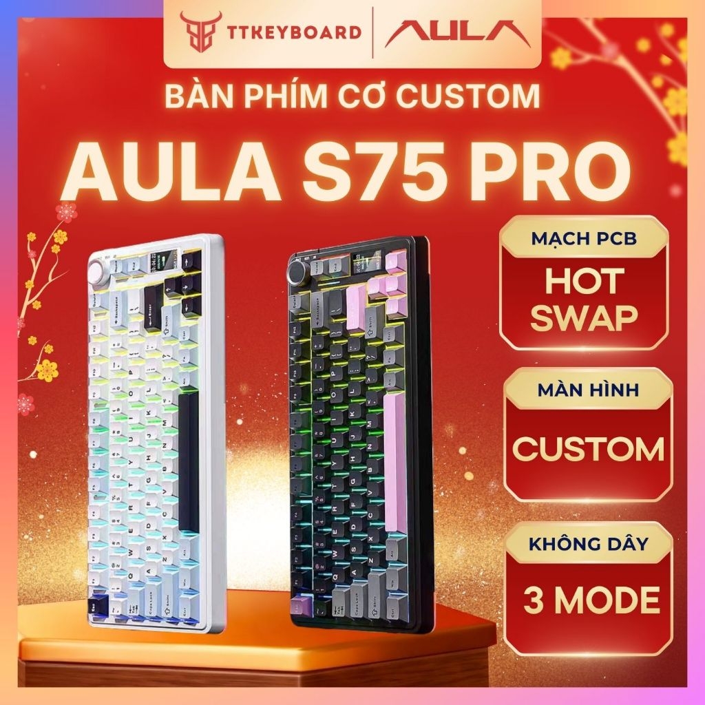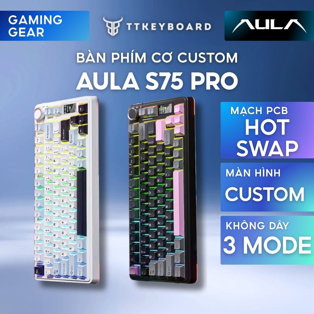 Bàn Phím Cơ Không Dây Aula S75 Pro - Có Màn Led Tùy Chỉnh - Led RGB Xuôi - 3 Mode Kết Nối Tiện Lợi