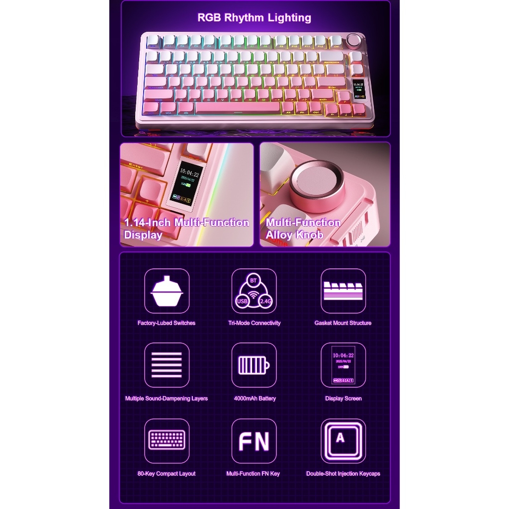 Màn hình LED TFT tùy chỉnh: Cho phép hiển thị ảnh GIF, ngày giờ, chế độ kết nối và nhiều thông tin khác, tạo dấu ấn cá nhân