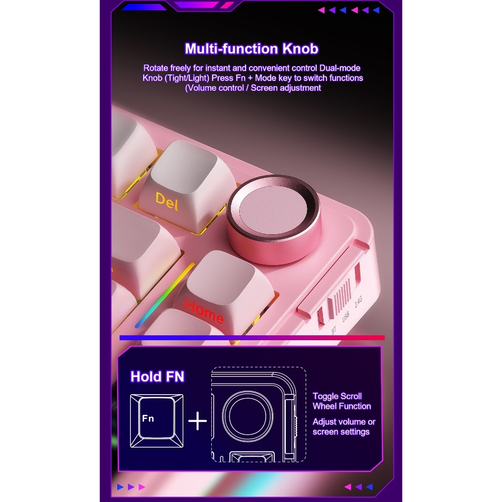 Kết nối 3 chế độ linh hoạt: Dễ dàng chuyển đổi giữa Bluetooth, Wireless 2.4G và dây cắm Type-C, tương thích với nhiều thiết bị