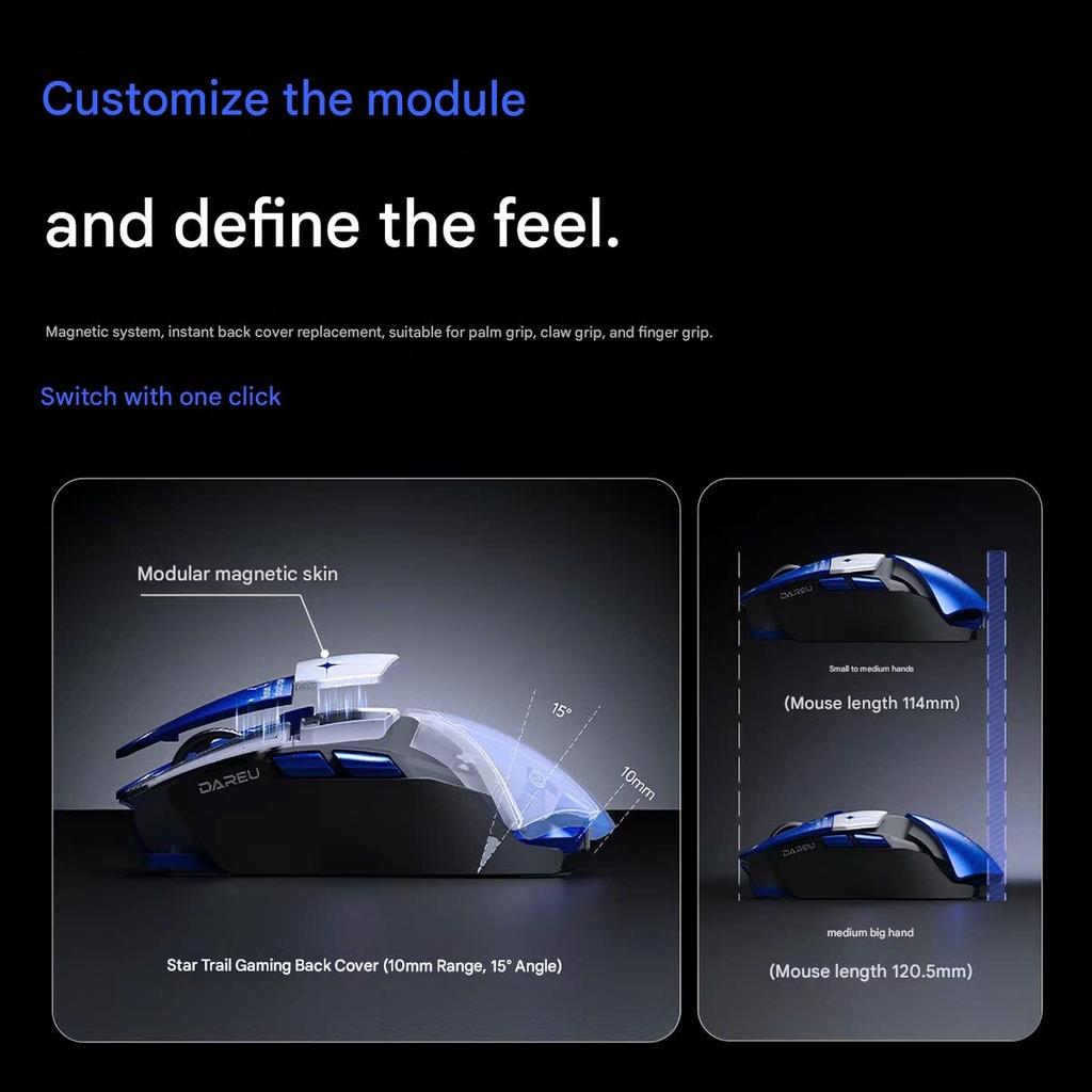 Không chỉ là một con chuột thông thường, DAREU ULTRA 07 là một hệ sinh thái module hóa cực kỳ ấn tượng, cho phép bạn thay đổi hoàn toàn cảm giác cầm nắm chỉ trong vài giây.