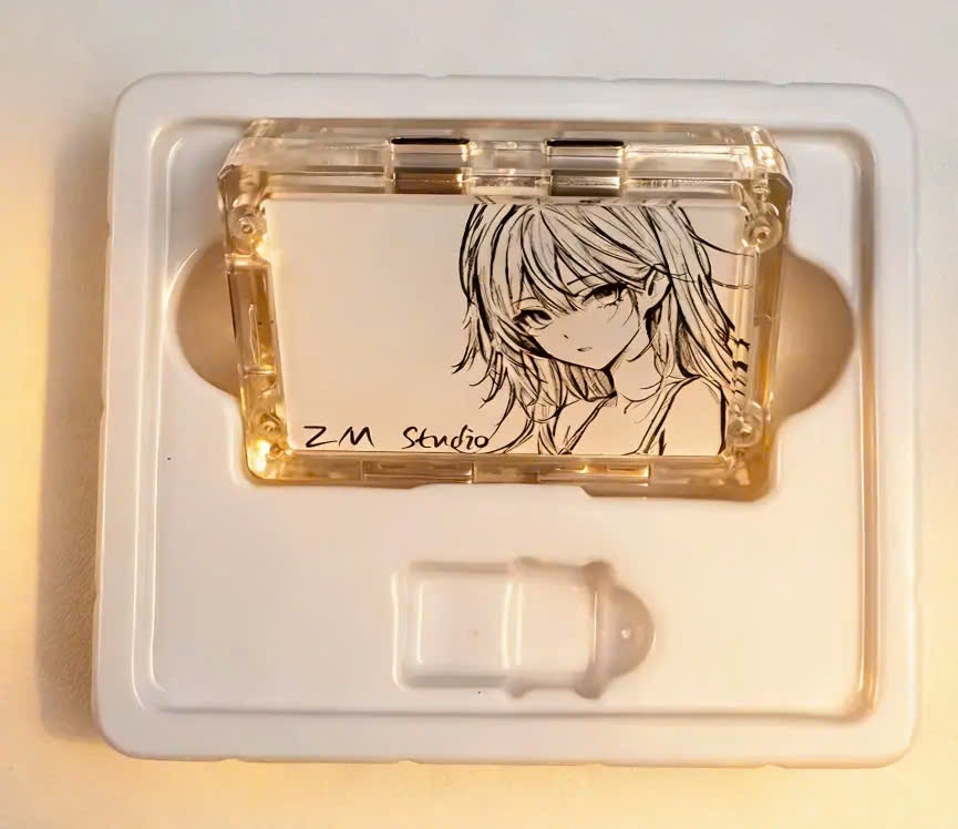 - Thiết kế: case trong suốt + mặt kính anime