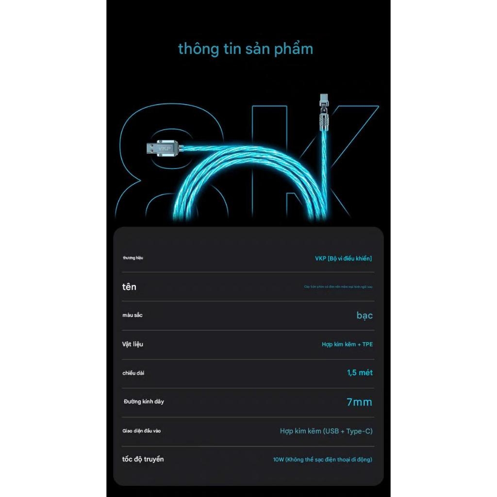 - Sản phẩm: Cáp 8k polling rate, xoay 180 độ led RGB