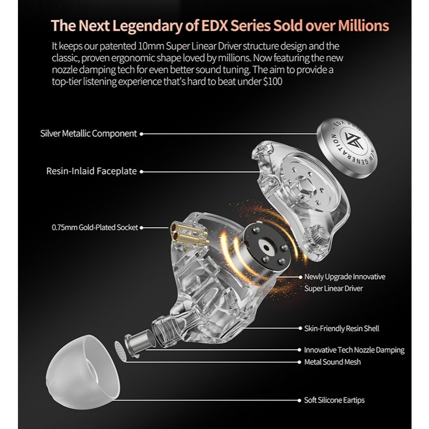 Tai Nghe IN EAR Nhét Tai KZ EDX Pro 2 Super Linear Driver 10mm Chất Âm HiFI Nghe Tạp