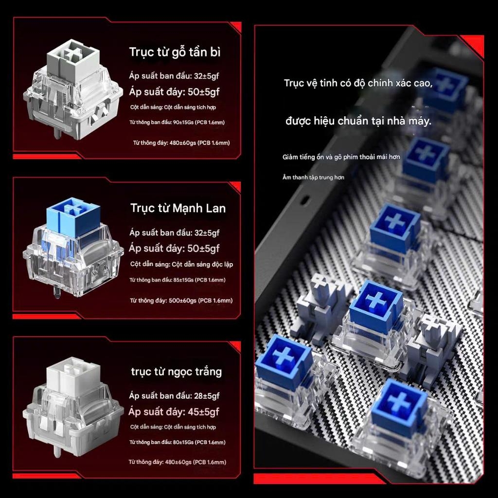 A80RT Đỏ - Keycap Dyesub 2 lớp- Plate Carbon - SW Menglan HE