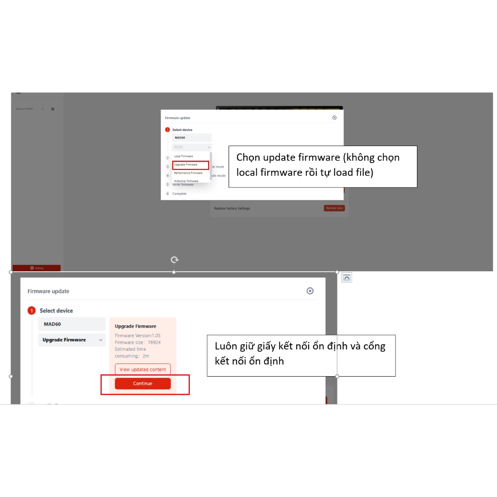 Lưu ý cực kỳ quan trọng về Firmware: Không tự ý cập nhật firmware bằng cách tải file thủ công. Hãy sử dụng tính năng "update firmware" trong phần mềm để hub tự cập nhật. Việc cập nhật sai có thể gây lỗi mạch và shop sẽ không hỗ trợ bảo hành