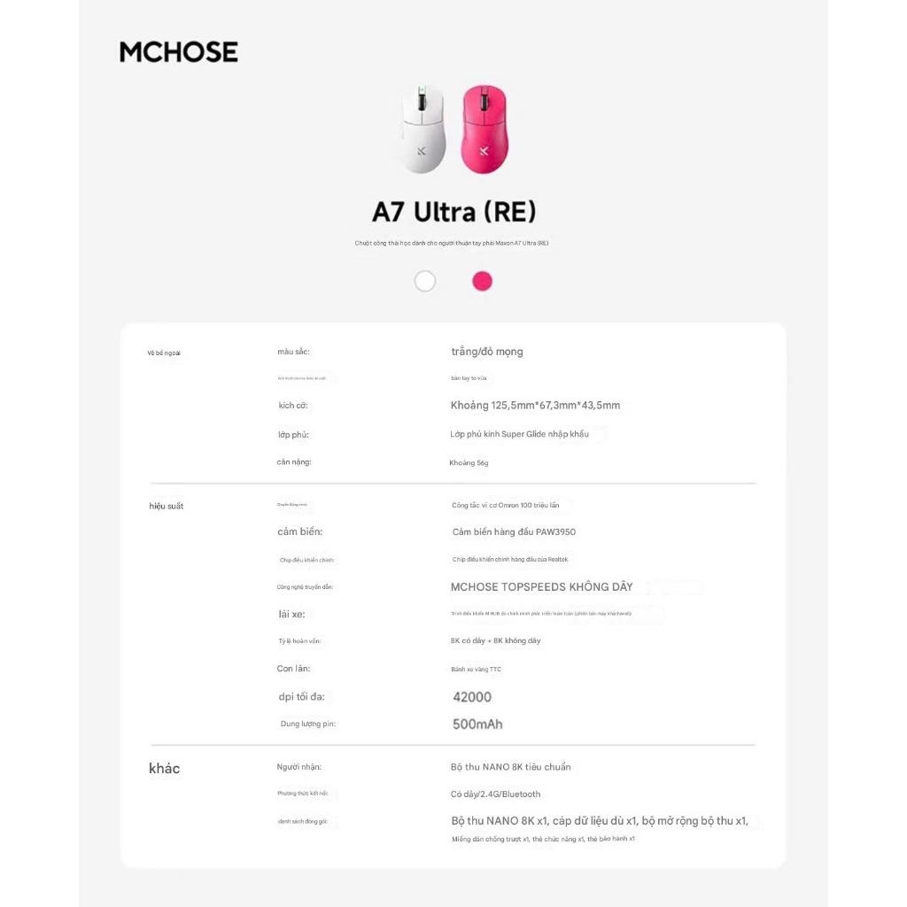[Hỏa Tốc] Chuột Không Dây Mchose A7 Ultra RE PAW3950 8K Polling Rate Siêu Nhẹ 56g - TTKeyboard