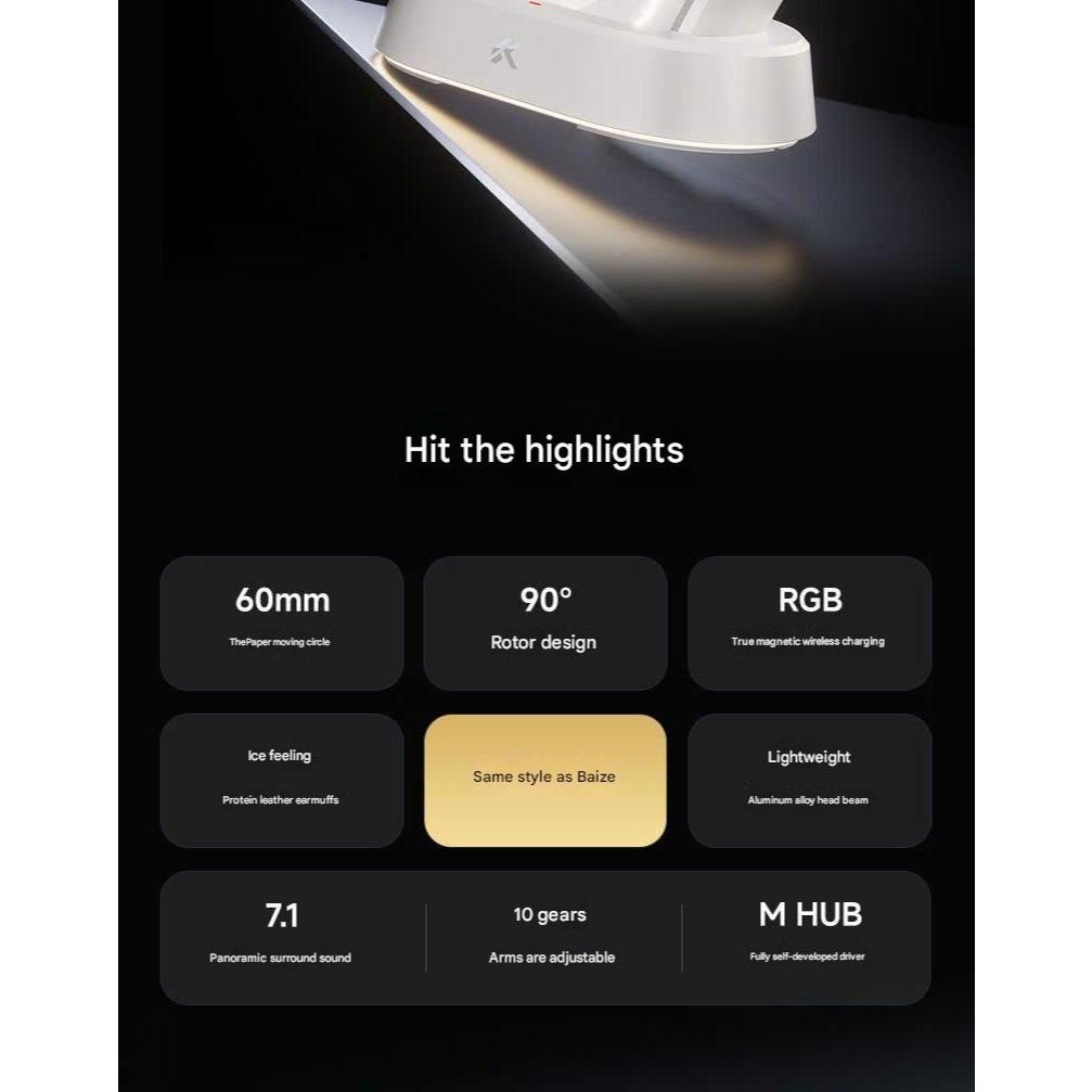 - Đế sạc nam châm RGB, đặt tai nghe là sạc - không cần cắm dây