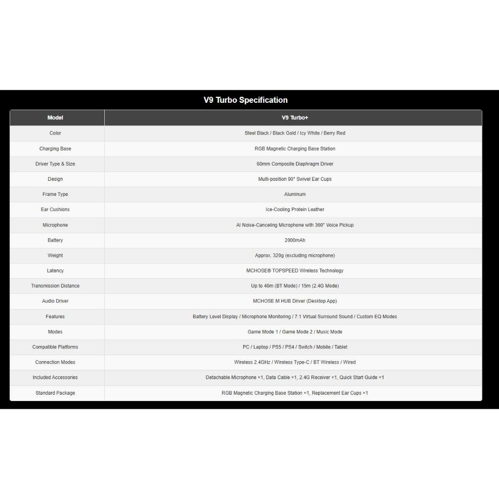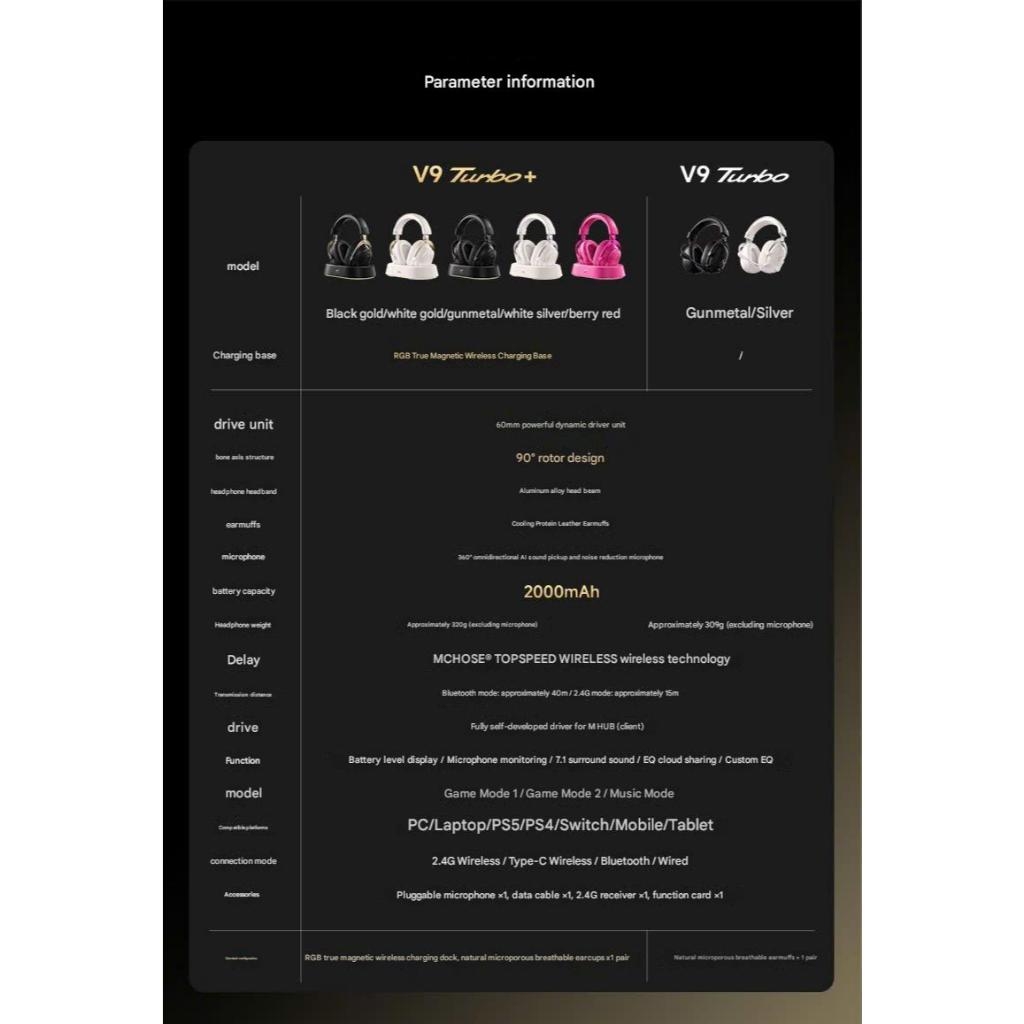 Tai Nghe Không Dây Gaming Flagship Mchose V9 Turbo Sạc Không Dây Từ Tính RGB Màng Loa 60mm