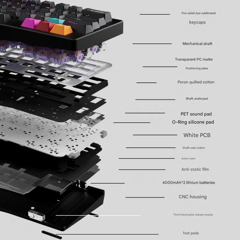 - Keycap: PBT dye-sub dày 1.7mm, in nhiệt 5 mặt