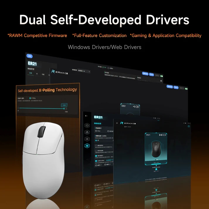 Chuột Gaming Không Dây RAWM ER21, Paw 3950, Dual 8K Rate, MCU Nordic 52840