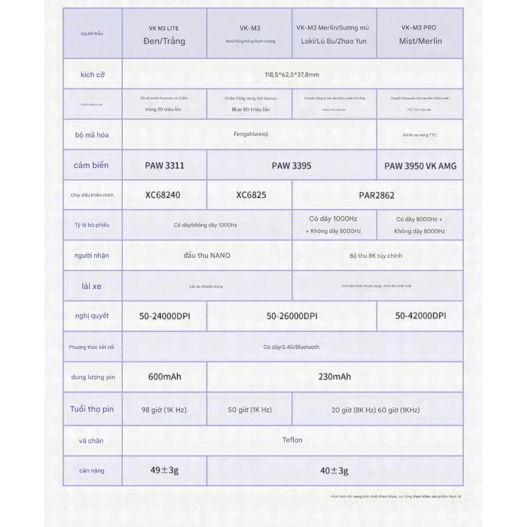 Chuột Gaming Không Dây Valkyrie VK M3 Lite49g PAW3311 DPI 24000 Pin 600mAh