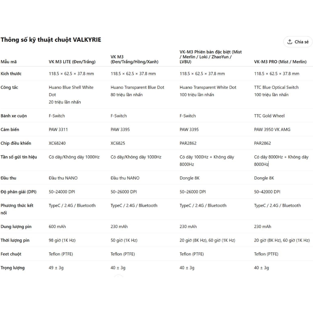 Mã sản phẩm: Valkyrie VK M3 Lite