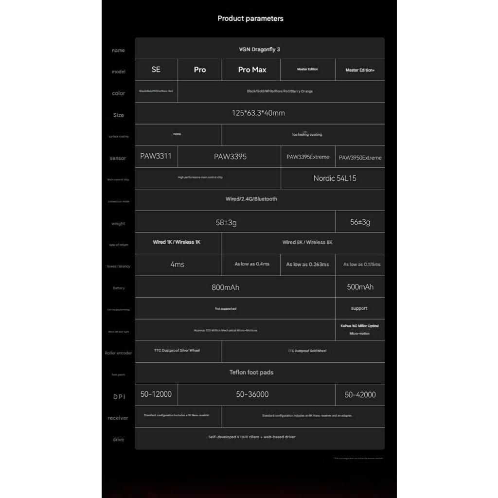 Chuột Gaming Không Dây VGN Dragonfly 3, Siêu Nhẹ, PAW3950 Extreme