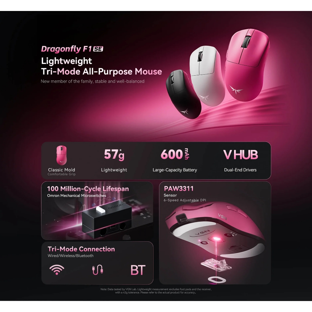 Chuột Gaming VGN F1 Super Edition Phiên Bản Mới, 3 Mode Kết Nối, Paw3311, Hiệu Năng Chuẩn Esport