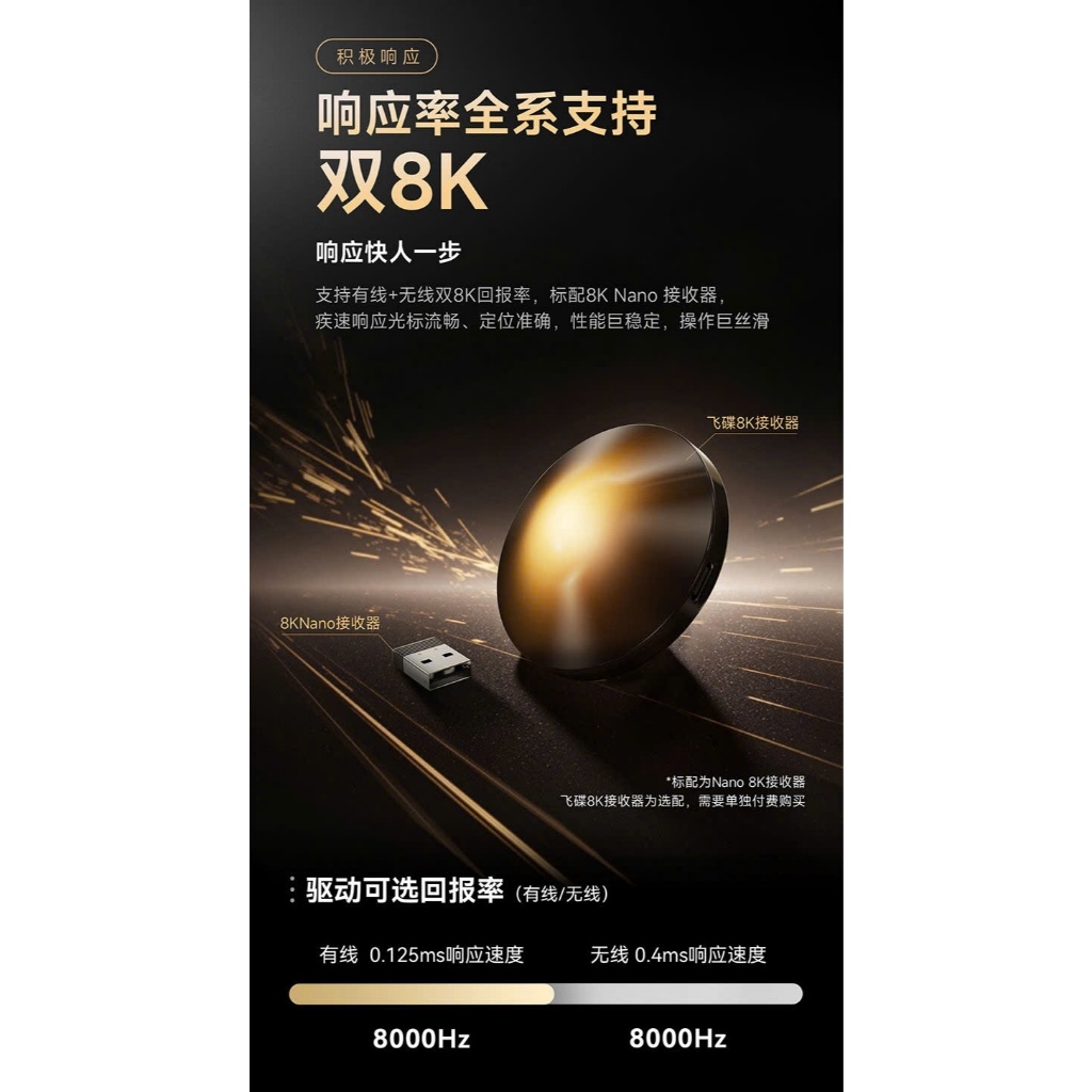 - Dual Polling Rate 8K (8000Hz): Độ trễ xuống tới 0.125ms, phản hồi vị trí chuột cực nhanh.